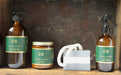 Savons purs pour les mains et le corps, fabriqués avec de l'huile d'olive et de l'huile de noix de coco. Une mousse riche et hydratante et un parfum qui persiste sur la peau. Les bouteilles d'apothicaire en verre ambré sont parfaites pour la salle de bain ou la cuisine.