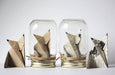 Pot mason décoratif contenant des pliages d'origami (l'art japonais du pliage de papier) - ici un renard plié soit dans du papier kraft, soit dans du papier journal. Réalisé à la main, ce bocal est prêt à venir décorer toute étagère, table ou bureau! C'est un objet unique et original à offrir en cadeau ou pour se gâter!