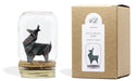 Pot mason décoratif contenant des pliages d'origami (l'art japonais du pliage de papier) - ici un renne plié dans un papier à motif vert foncé. Réalisé à la main, ce bocal est prêt à décorer toute étagère, table ou bureau! C'est un objet unique et original à offrir en cadeau ou pour se gâter!