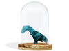 Cloche décorative contenant un modèle d'origami (l'art japonais du pliage de papier) - ici un dinosaure plié dans un papier à motif d'écailles vertes. Réalisée à la main, cette cloche est prête à être posée sur une étagère, une table ou un bureau pour venir compléter n'importe quel décor! C'est un objet unique et original à offrir en cadeau ou pour se gâter.