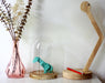 - Matériaux / cloche standard: Cloche en verre avec socle en bois clair, Papier à motif, Fil métallique, Liège.
