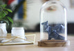 - Matériaux / cloche standard: Cloche en verre avec socle en bois clair, Papier à motif, Fil métallique, Liège.