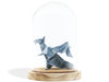 Cloche décorative contenant un modèle d'origami (l'art japonais du pliage de papier) - ici un dragon plié dans un papier à motif bleu avec hexagones jaunes. Réalisée à la main, cette cloche est prête à être posée sur une étagère, une table ou un bureau pour venir compléter n'importe quel décor! C'est un objet unique et original à offrir en cadeau ou pour se gâter.