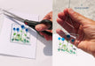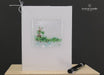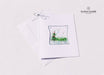 La carte mesure 4" x 5.5" ((10 x 14 cm) et est faite d'un magnifique carton blanc. Une enveloppe est jointe. Le paysage est collé sur la carte. La personne qui recevra la carte pourra utiliser le cordon argent pour suspendre la décoration de verre et la conserver pour toujours.