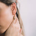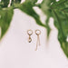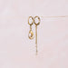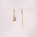 • Boucles d'oreilles asymétriques composées d'un pendentif goutte dorée avec cabochon de perle de verre vintage et de fines chaînes de laiton plaqué or avec perles de verre miniatures. Montées sur des dormeuses de laiton plaqué or.