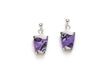 Boucles d'oreilles suspendues mauves en argent fabriquées dans Hochelaga-Maisonneuve à Montréal au Québec.