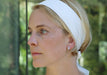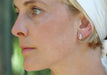 - Boucles d'oreilles en forme de demi-fleur portées à la verticale.