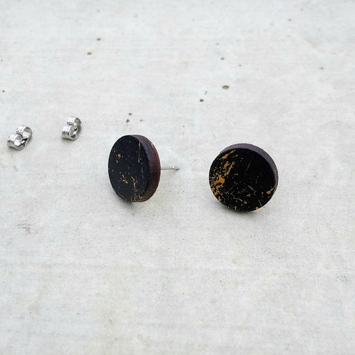 Marque et Produit créé et confectionné au Québec17.00$Boucles d'oreilles peintes en bois du québec (merisier) et acier inoxydable- éclaboussure or - art...