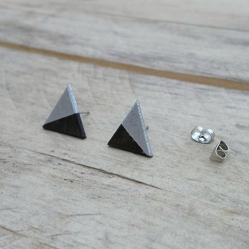 Marque et Produit créé et confectionné au Québec25.00$Boucles d'oreilles en bois du québec (merisier) et acier inoxydable- triangles noir et argent