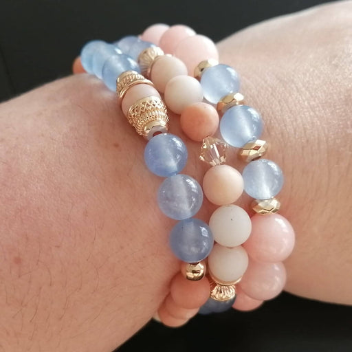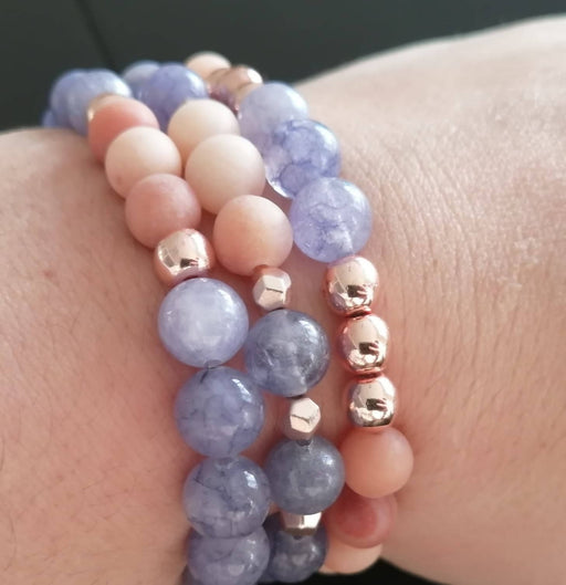 FE OrigineDescription des bracelets: (numéro en bas à droite de chaque photo) 10- Angélite, entretoises Hématite, Quartz mat de différents tons de rose11- An...
