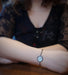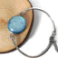 Une pièce de verre fusion faite de verre dichroïque argent, avec des reflets bleus est utilisée comme pièce centrale sur ce bracelet fait en acier inoxydable, un métal qui restera beau au fil du temps! Il est ajustable à l'aide d'une chainette à l'arrière du bracelet et est attaché à l'aide d'un fermoir type pince de homard.