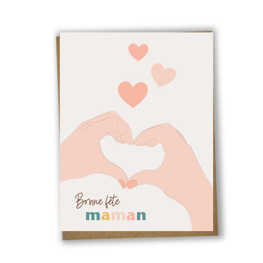 Lili GraffitiCarte de souhaitsDire Bonne fête maman avec le "coeur avec les mains" et des couleurs toutes douces... illustration de Marie-Laure Plano format 4.2...