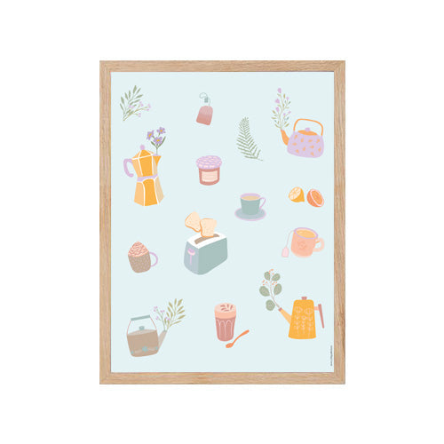 Lili GraffitiAfficheDes cafés de toutes sortes, du pain frais, une orange prête à être pressée...tous nos essentiels pour un déjeuner réussi dans une affiche pa...