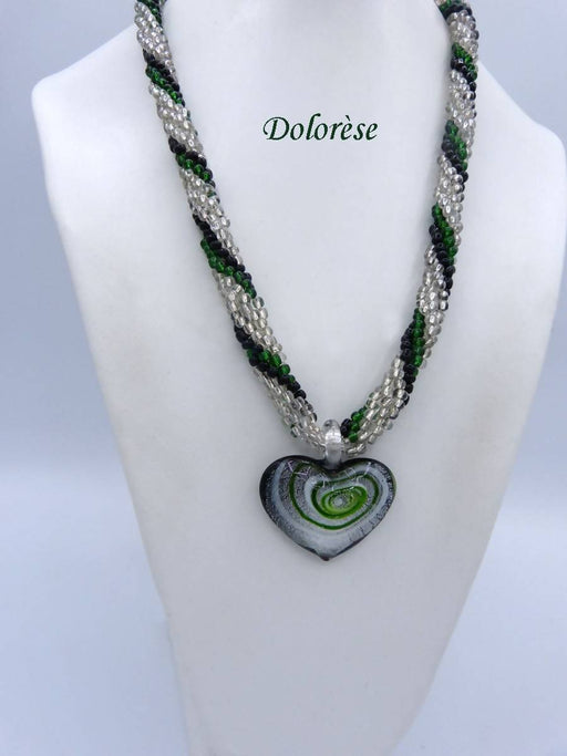 Metiers d’Art & CadeauxCollier de perles GabrielleCe collier est de conception unique. Il mesure 19 pouces (48cm) le pendentif de verre 1 3/4pouces (4cm)Le fermoir est id...