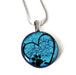 Le verre dichroïque donne un éclat unique au pendentif, qui est de forme ronde, et fait environ 2.2 cm de diamètre. La forme peut varier légèrement de celle montrée sur les photos, n'oubliez pas qu'il est fait de façon entièrement artisanale, sans moule!