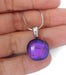 Une chaine en acier inoxydable de 18 pouces est incluse avec le pendentif. De couleur mauve/bleu foncé.