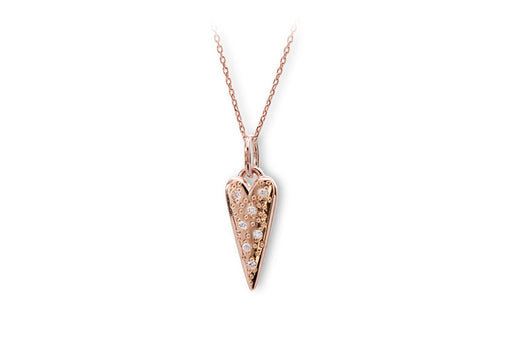 Flamme en roseLes particularités de ce bijou Sept petits diamants brillent comme une constellation sur ce coeur scuplté à la main. Ce collier convient à une femm...