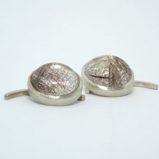 Atelier émigéBoutons de manchettes en Argent 925 serti de 2 Quartz rutile de 11 mm de diamètre (6,66 carats).Simples et intemporels, laissez vous charmer par le...