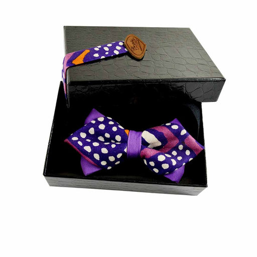 Marque et Produit créé et confectionné au Québec50.00$Noeud papillon pointe de diamant mauve à pois - bogolan