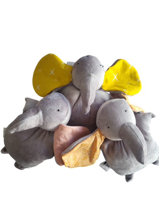 Fait à la main au Québec, ce douillet éléphant est fabriqué à base de soyeux velours de bambou et coton biologique. C'est un Papoum si tendre et drôle avec ses grandes oreilles. L'éléphant douillet est aussi disponible avec l'intérieur des oreilles en coton biologique aux motifs variés.