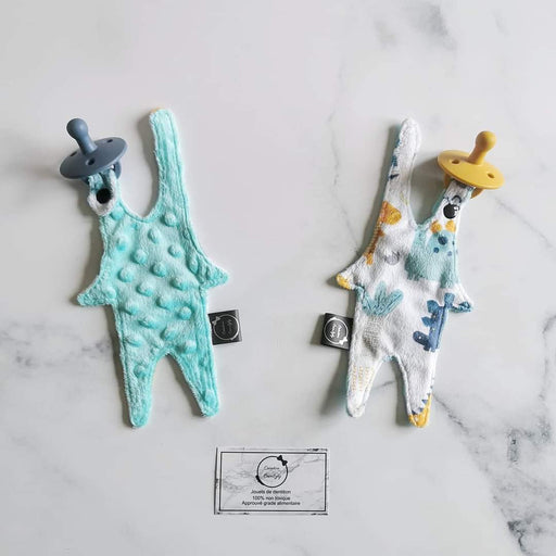 Marque et Produit créé et confectionné au QuébecÀ partir de 17.99$Attache suce petit bonhomme dino