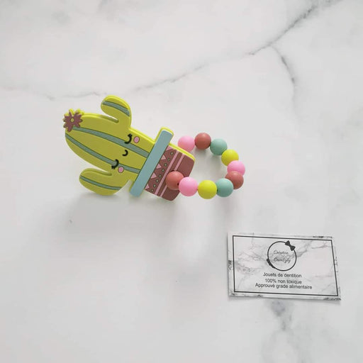 Marque et Produit créé et confectionné au Québec23.99$Hochet de dentition avec jouet en silicone cactus