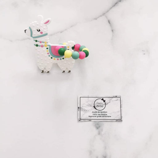 Marque et Produit créé et confectionné au Québec23.99$Hochet de dentition avec jouet en silicone lama