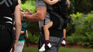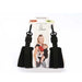 Les étriers s'attachent de chaque côté sur les anneaux situés sur la ceinture. Ils s’ajustent en hauteur. Installez en premier les étriers sur chaque anneau. Quand le bébé est bien supporté dans son porte-bébé, enfilez chacun de ses pieds à travers les étriers. Ajustez la hauteur en fonction de la position de ses jambes. Les genoux doivent se retrouver à peu près à la hauteur de ses fesses. Les étriers permettent de soulever les pieds pour assurer au bébé une assise confortable.