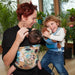Pour l'installer, attachez d’abord la ceinture. Agrandissez les bretelles au maximum avant de les mettre. Il faut enfiler une bretelle à la fois par-dessus la tête. Installez ensuite son copain favori et ajustez le serrage sur les côtés.