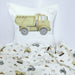 Personnalisez la housse de couette Camions en ajoutant le prénom de votre enfant sur le coussin assorti. C’est une touche personnelle qui rendra sa chambre encore plus spéciale.