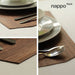 Ensemble de 4 napperons. Les napperons de la famille nappo sont fabriqués en placage de bois véritable et offerts en 4 essences différentes : nappo (1) merisier, nappo (2) noyer, nappo (3) cerisier et nappo(4) chêne noir. Ils sont traités à l’huile pour en faciliter l’entretien.