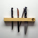 Support mural pour couteaux fait de retailles de bois (essence de bois variées).
