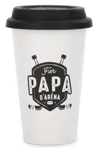 Marque et produit conçu au Québec et confectionné à l’étranger9.99$Tasse de voyage '' fier papa d'aréna ''