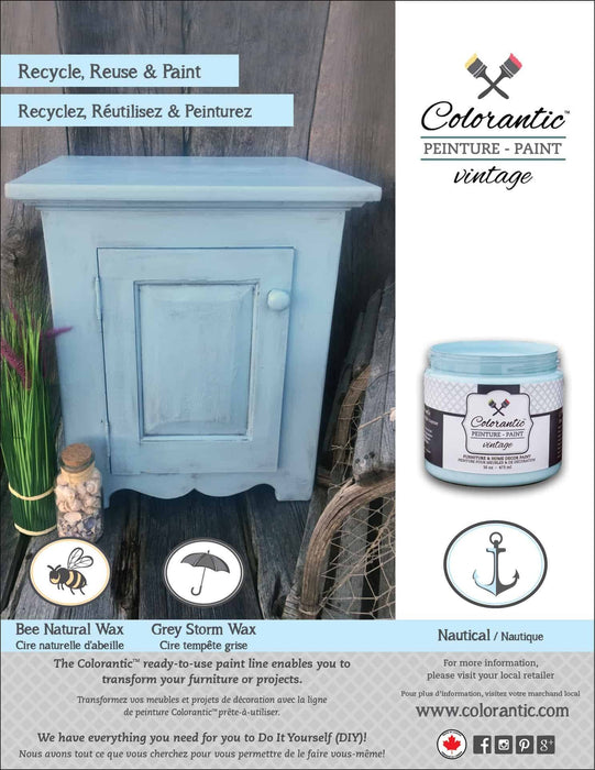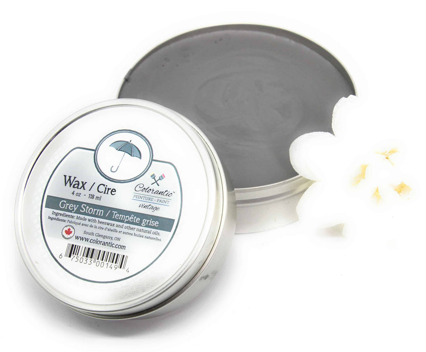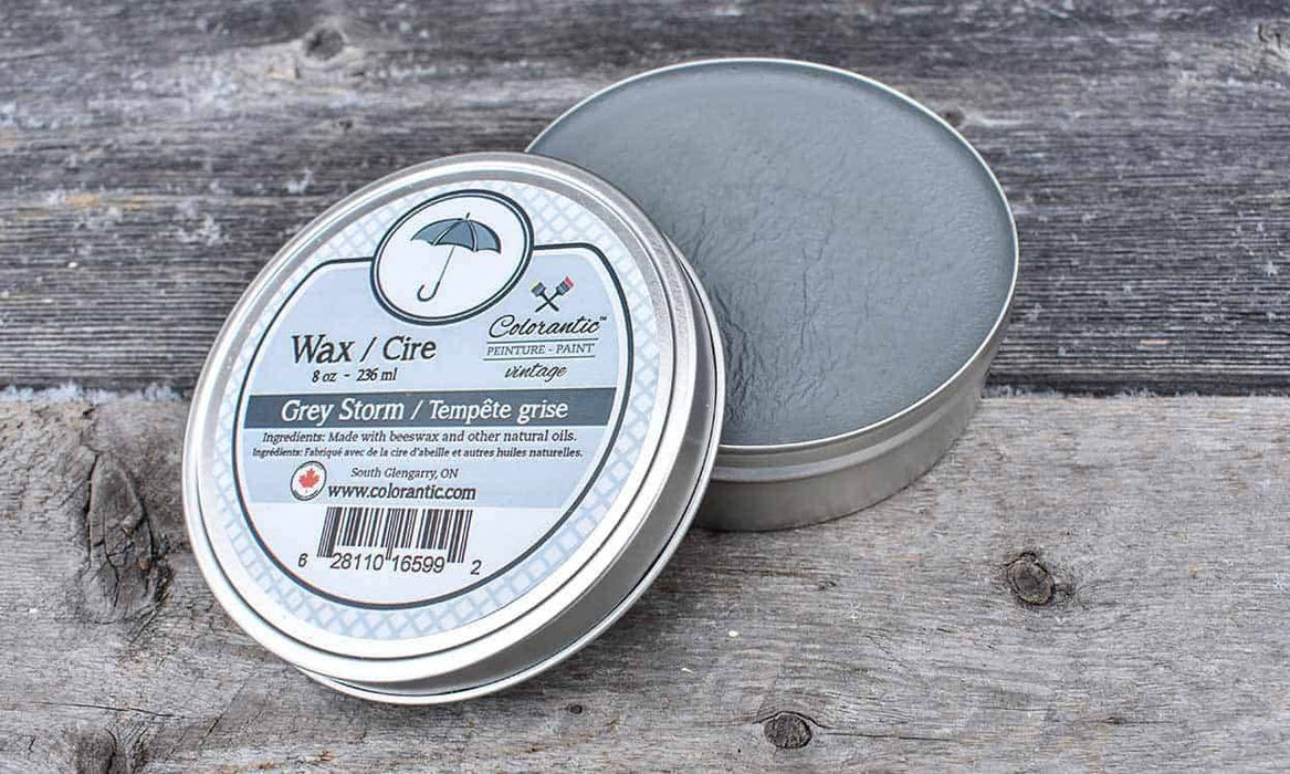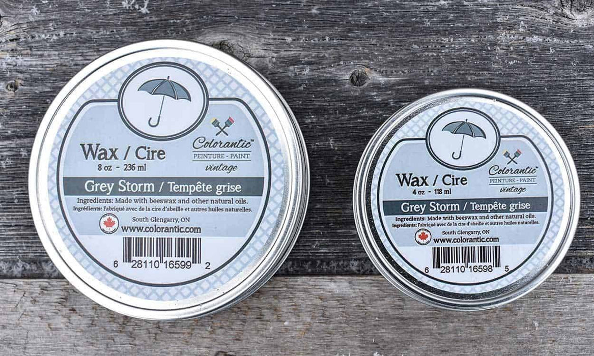 Nos cires sont offertes en formats de 4 et 8 oz. N'oubliez pas qu'il est préférable d'appliquer la cire naturelle avant les cires foncées. Les cires sèchent pendant 1 à 7 jours. Poncer/essuyer la surface cirée pour aider au temps de séchage.