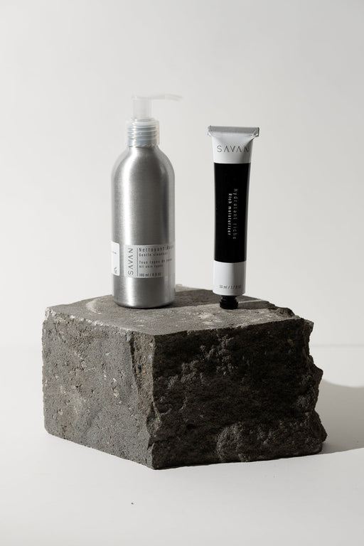 SavanC'est quoi?Un duo d'incontournable. Le nettoyant doux 2 en 1 démaquille et nettoie délicatement, l'hydratant riche répare la barrière d'hydratation...