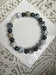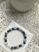 Ce bracelet dans des tons de noir, de gris et de blanc peut être porté en tout temps. Il met en valeur les gemmes d'Agate et les perles de Pierre de lune bleues-blanches.