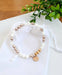 Bracelet en nacre de perle très délicat, il y a des perles de bois naturel et une breloque en acier inoxydable. Elle ne changera pas de couleur.