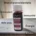 - Shot d’aronia :Jus pur 100% de baies d’aronia du Québec, un concentré d'une couleur vibrante de bourgogne, notre jus renferme un joli panel antioxydants notamment les anthocyanes qui lui donne cette belle couleur foncée et unique.Le secret d'une richesse exceptionnelle en antioxydants de nos baies réside dans l'arbuste, pour se protéger de la rudesse du climat Canadien (-35 degrés), il développe énormément de substances au fort pouvoir antioxydant.Saveur:Notre jus d'aronia est un veritable coup de fouet! de saveur de baies fraîches, légèrement acidulé, similaire aux myrtilles, canneberges ou grenades, mais avec un profil nutritionnel plus impressionnant, des tannins et des fibres. Vos papilles vont adorer!Utilisation :- Jus pur, pressé à froid, fait de 100% de baies d’aronia.- Produit en petite quantité, sans sucre ajouté et délicatement pasteurisé.- Format pratique (60 ml), fournit une dose concentrée de nutriments.- Boire pur tel quel ou dilué dans de l'eau pour une boisson rafraichissante.- Ajoutez quelques gouttes d'aronia et colorer vos jus, cocktails, smoothies, vinaigrettes ou trempettes.- Une fois ouvert, conserver au réfrigérateur, à consommer dans les 10 jours.Bienfaits :L’aronia est le végétal le plus riche en anthocyanes, notre shot d’aronia contient une très forte concentration en polyphénols particulièrement en anthocyanes, des antioxydants puissants.- Un tonic pour votre peau : notre shot contribue à avoir une belle peau.- Un boost d'énergie : Maintient un bon niveau d'énergie et facilite la récupération après une séance d’exercices.- Idéal pour les sportifs après une activité physique.