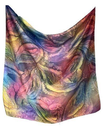 Marque et Produit créé et confectionné au Québec52.00$Foulard carré de soie arc-en-ciel