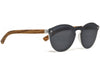 Lunettes de soleil rondes en bois de zèbre avec verres polarisés une pièce gris foncé