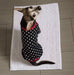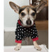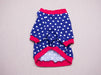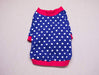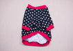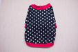 Chandail, pull, tshirt pour chien ou chat noir ou bleu avec pois blancs et col, poignets et taille rouges