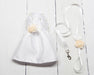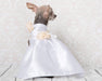 Ensemble robe martini pour chien en satin blanc pour mariage, avec brillants dorés ou argentés, fleurs, collier et laisse assortis