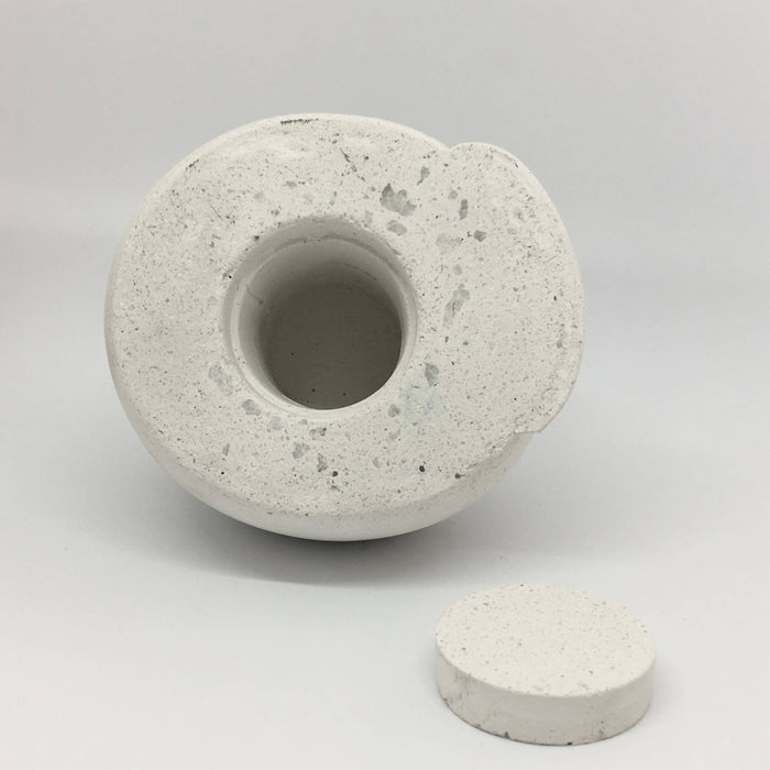 Ce monument est fabriqué à 100% à partir de béton recyclé et est disposable à l'intérieur ou l'extérieuré. Un compartiment souvenir est présent sous le monument et se referme avec un bouchon de béton recyclé qui se colle.