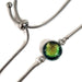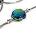 Fait en acier inoxydable (ne décolore pas, ne tache pas et ne cause pas d'allergies) et de verre dichroïque vert flash, avec des reflets bleu et dorés quand on le regarde de côté. Il est parfait pour ajouter une touche de couleur à une tenue plus sobre, ou encore pour porter avec une paire de jeans!