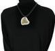 Réalisé de verre, ce pendentif en forme de coeur est fixé sur un gros cordon de tissu gris foncé et notez la petite forme de coeur également sur l'endos