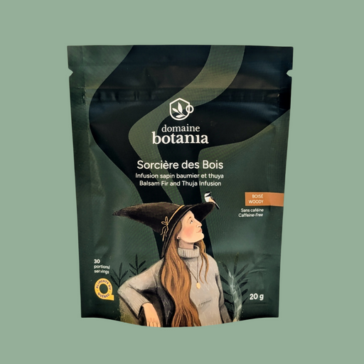 Les Fées Sorcières s.e.n.c.La Sorcière des Bois est une tisane boisée aux arômes profonds de conifères, inspirée des savoirs simples et enracinés des forêts québécoises. Le s...