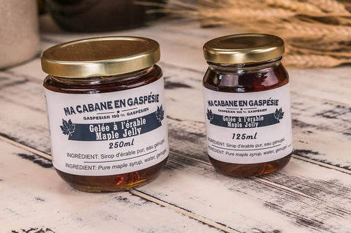 Ma Cabane en GaspésieDélicieuse gelée d'érable avec un goût délicat.. elle vous fond littéralement en bouche!format: 250 ML