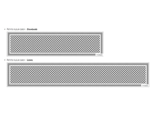 Maison LorrainLES CHEMINS DE TABLE DE VINYLE (TABLE RUNNERS) PETITE FLEUR GREY / THE VINYL TABLE RUNNERS PETITE FLEUR GREY - NOUVELLES GRANDEURS / NEW SIZESCerta...