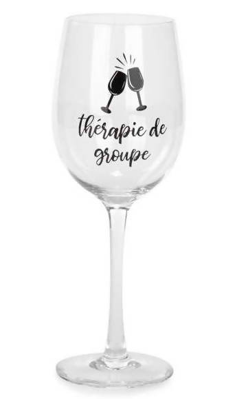 Marque et produit conçu au Québec et confectionné à l’étranger17.99$Verre à vin ''thérapie de groupe ''
