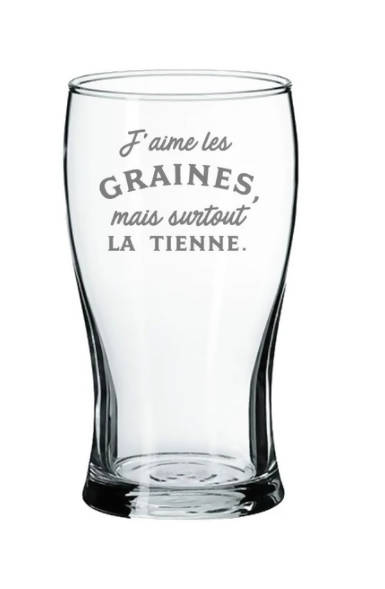 Enligne Ta DécoVERRE À BIÈRE J'AIME LES GRAINES, MAIS SURTOUT LA TIENNES.Verre à bière avec gravure de qualité supérieure. Un excellant choix de cadeau pour n'imp...